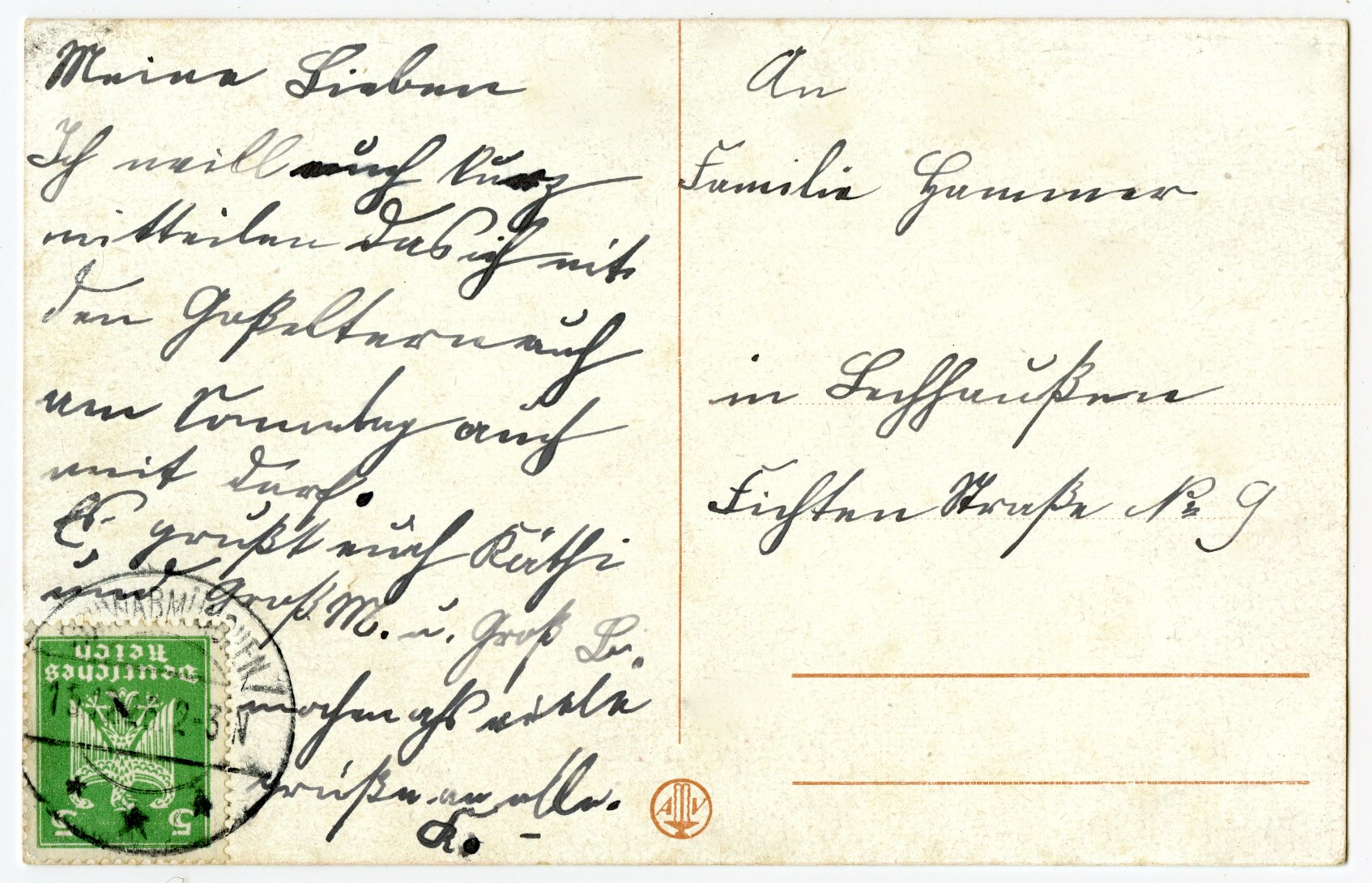 The artist of the example is Herbert Schultz (1884-1966), based in Berlin. Here is another example of his work, for NPG, with a more tyical version of his signature (HSB).