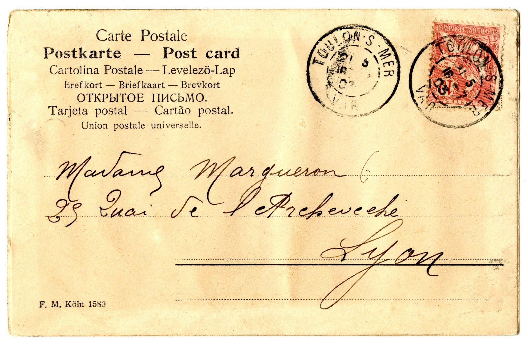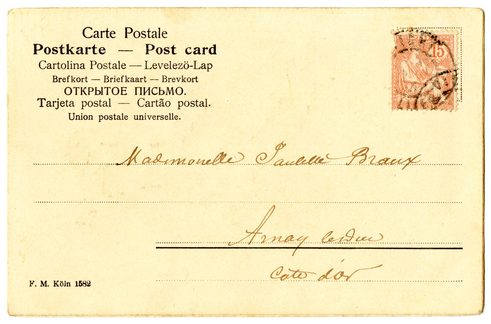 Cards sometimes have full name, sometimes F.M. Köln (typically on early two-layer embossed cards) and sometimes F.M.K.