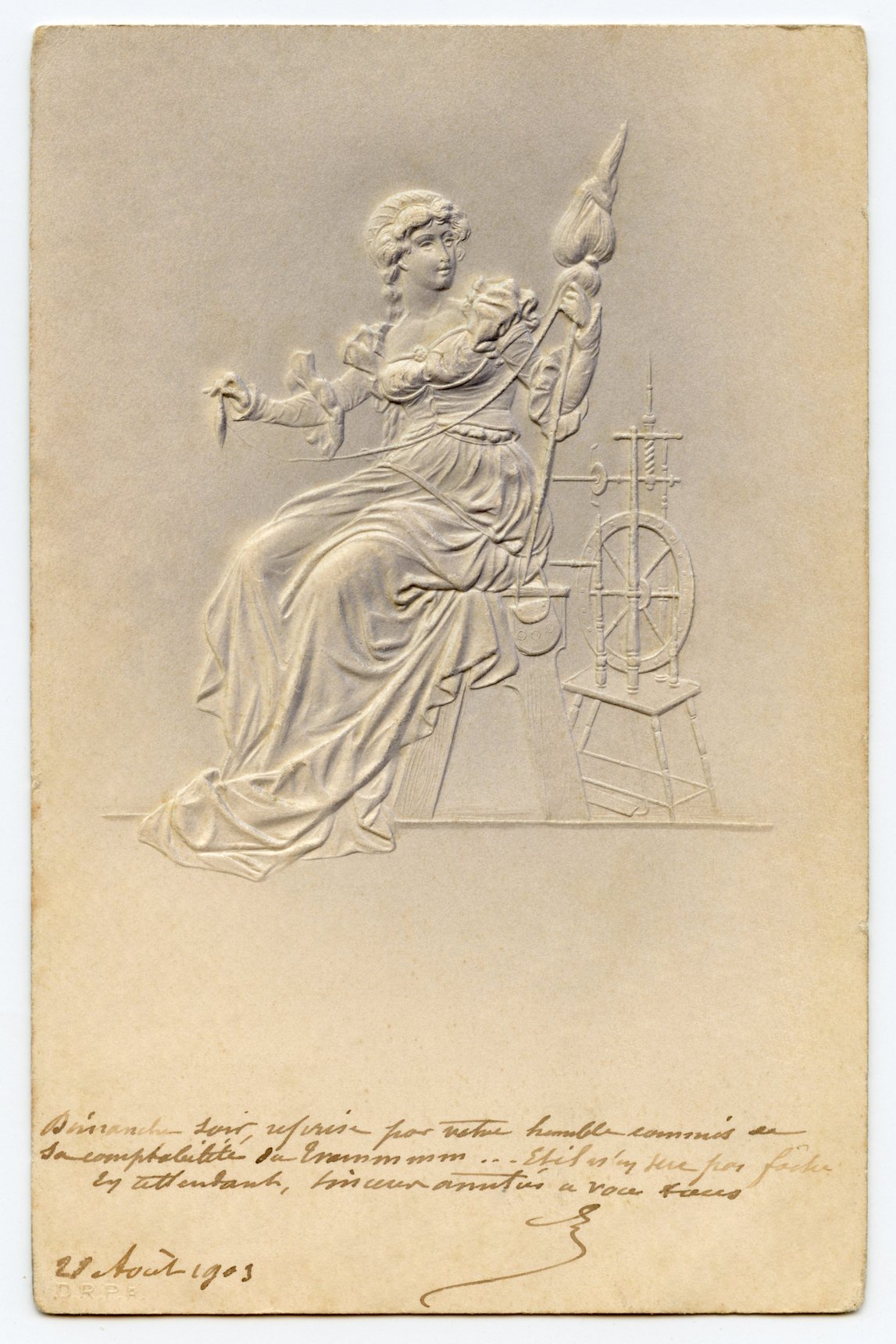 The embossed cards have a producer's logo on the lower left, ""DRPA, the A slightly smaller.
