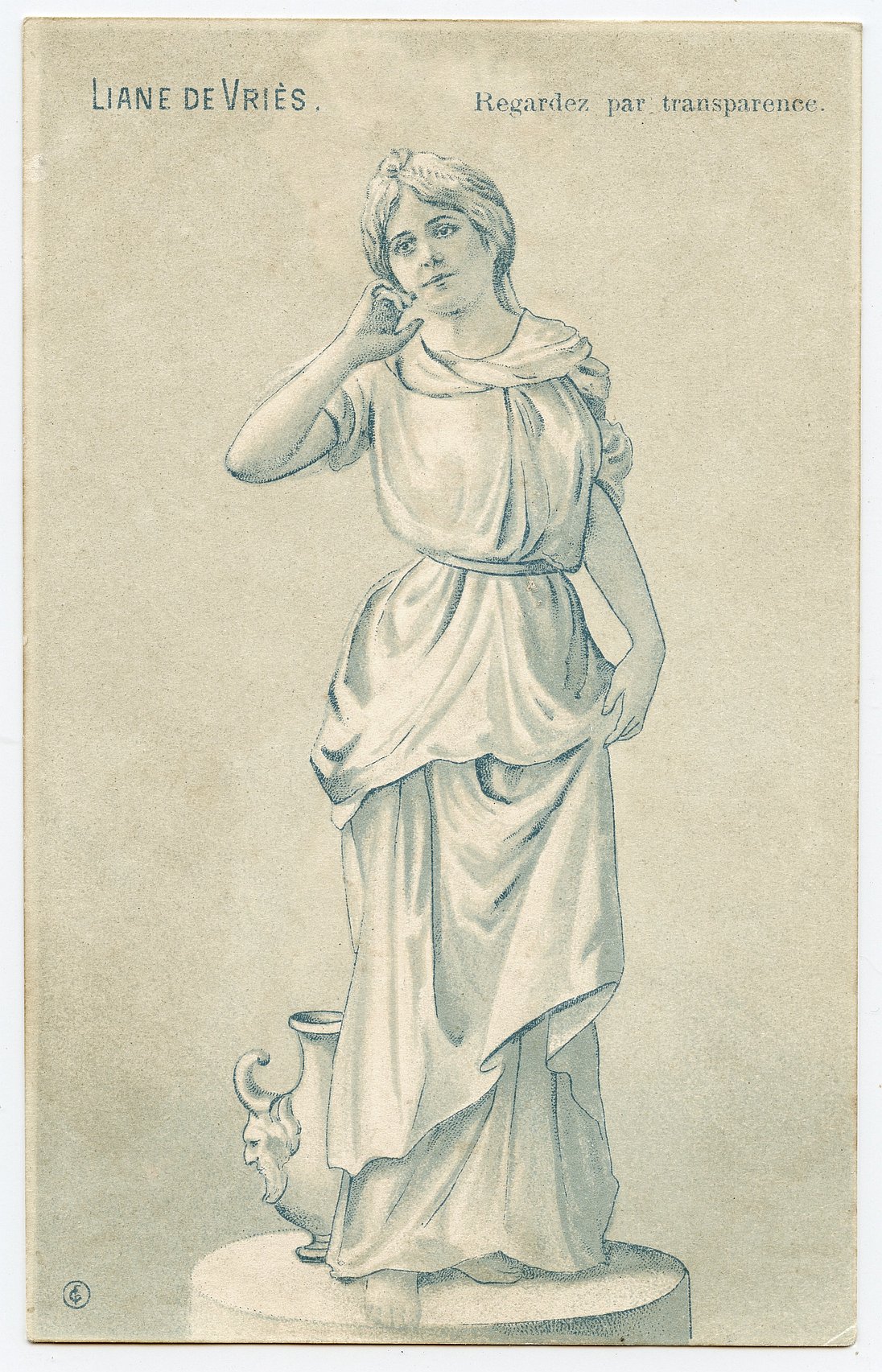 There are several kinds of "hold-to-light" cards; the type illutrated here are maybe the most impressive though you need a strong backlight to get the full effect. Subjects are classical statues (one is illustrated in the