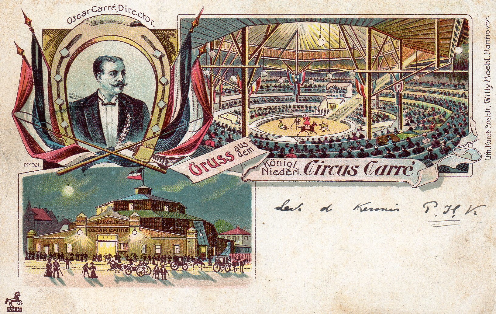 Image courtesy of Wikimedia Commons. Cards I have seen are all litho Gruss aus ... types around 1900 mostly featuring views and also carrying his full name.